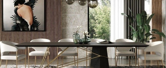 (Set of 2) Paris fully upholstered dining chair and Brushed with brushed gold accents