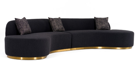 - Glam Black Fabric Curved Sectional Sofa with Grey Pillows