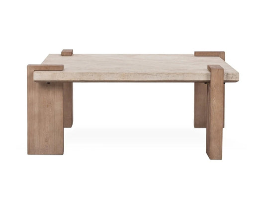 40" Solid Travertine Square Coffee Table with solid reclaimed pine wood