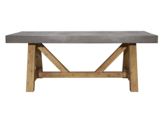 79" Outdoor Solid Concrete Dining Table with wood trestle pedestal