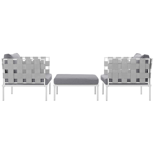 Harmony 3 Piece Outdoor Patio Aluminum Sectional Sofa Set by Modway in White Gray