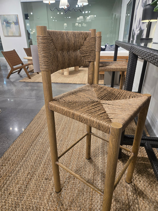 Wood and Rattan Counter Stool in Honey Natural Heathered Weave Ivory