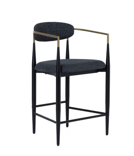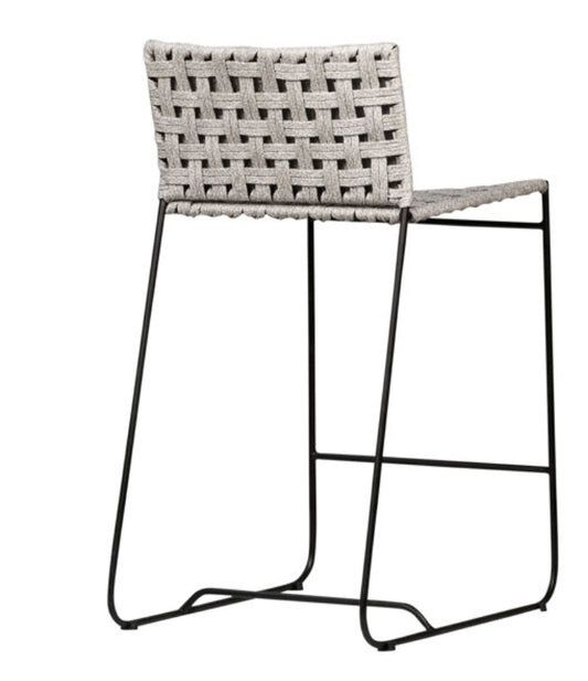 Wally Coastal Beach Grey Woven Rope Seat Black Iron Frame Counter Stool