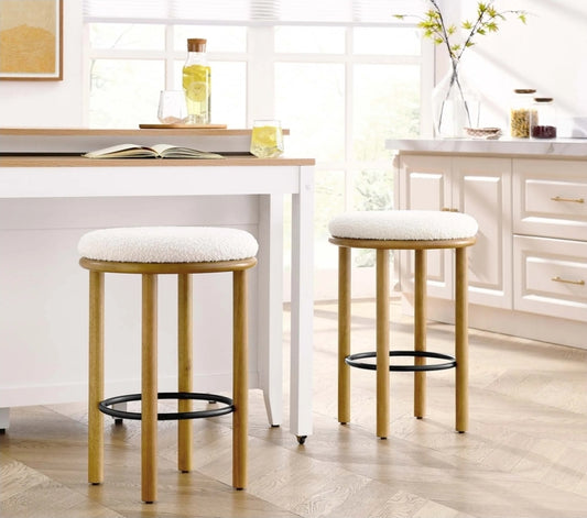 Saldino Cream Boucle and Solid Wood Counter Stool
