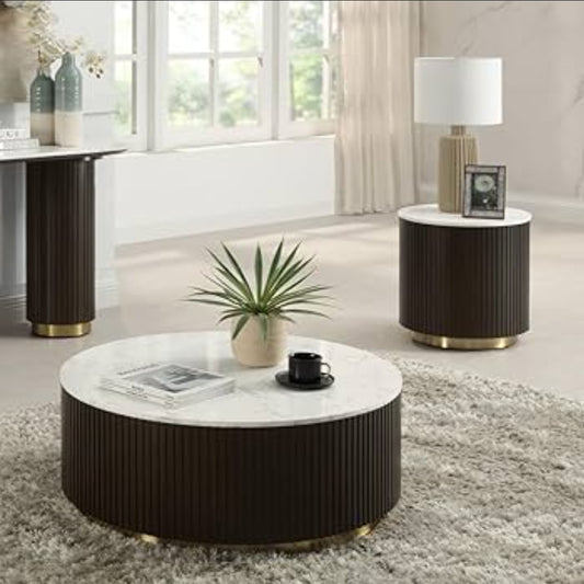 Nesting Coffee table Set with Ceramic stone top and Walnut Base