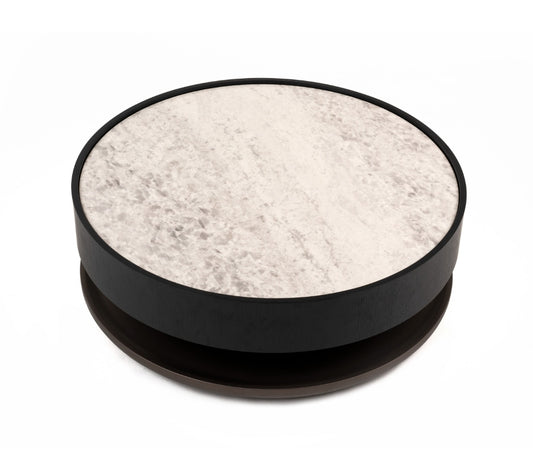 Modern 36.5" Ceramic Stone Black Oak Round Coffee Table