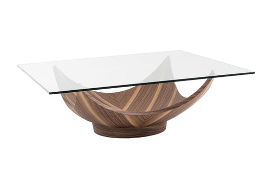 Modrest Sunset - Contemporary Glass + Walnut Square Coffee Table