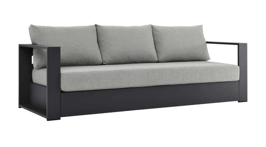 Lamod Modern powder coated aluminum black sofa upholstered in gray outdoor cushions
