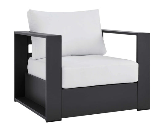 Lamod Aluminum Armchair in Charcoal frame with white cushions