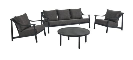 Santiago Black Coated Aluminum Seating Set - White Sunbrella Cushions