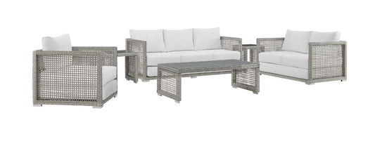 Lamod Aluminum Double Chaise Sectional w/ White Cushions