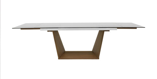 Modrest Babia Modern Smoked Glass & Walnut Extendable Dining Table