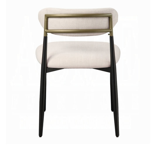 Pomme Beige textured Fabric Dining Chair with brushed brass
