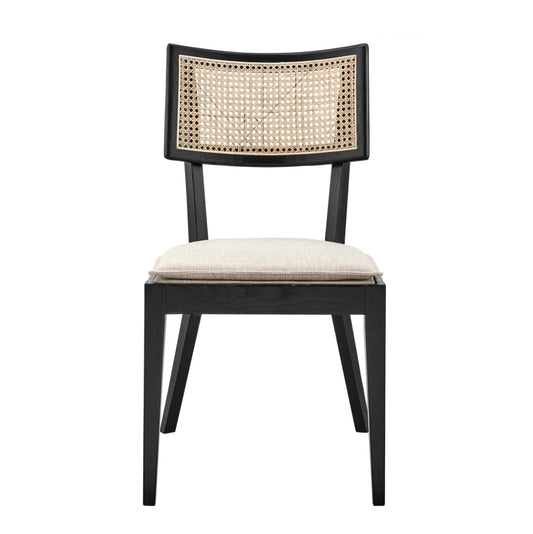 Loren Solid Wood Dining Chair with Black Cane Beige cushions