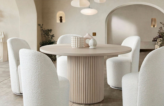 Tete Upholstered Swivel dining chair in ivory performance boucle fabric