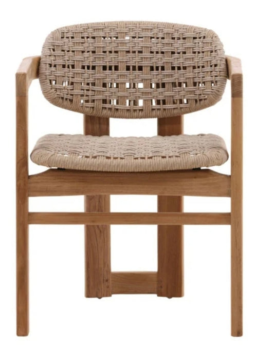 Outdoor Teak and Twisted Wicker Dining Armchair
