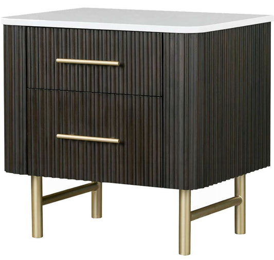 White Marble Top & Flutted Espreeso Wood Finish with gold accents