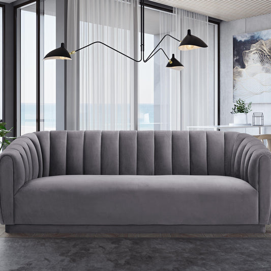 - Glam Black Fabric Curved Sectional Sofa with Grey Pillows