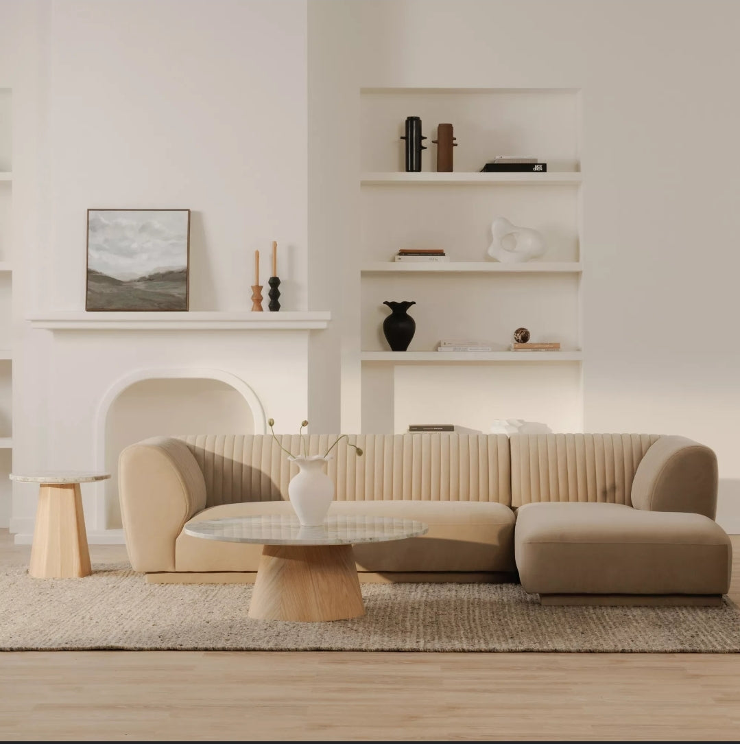 Lisette Channel tufted Performance Velvet Sectionall upholstered in beige plush fabric