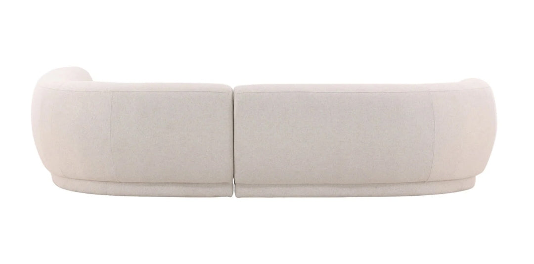 Modern Cream linen blend upholstered sectional. Soft and sleek flowing rounded design. Total weight is approx. 245 lbs.