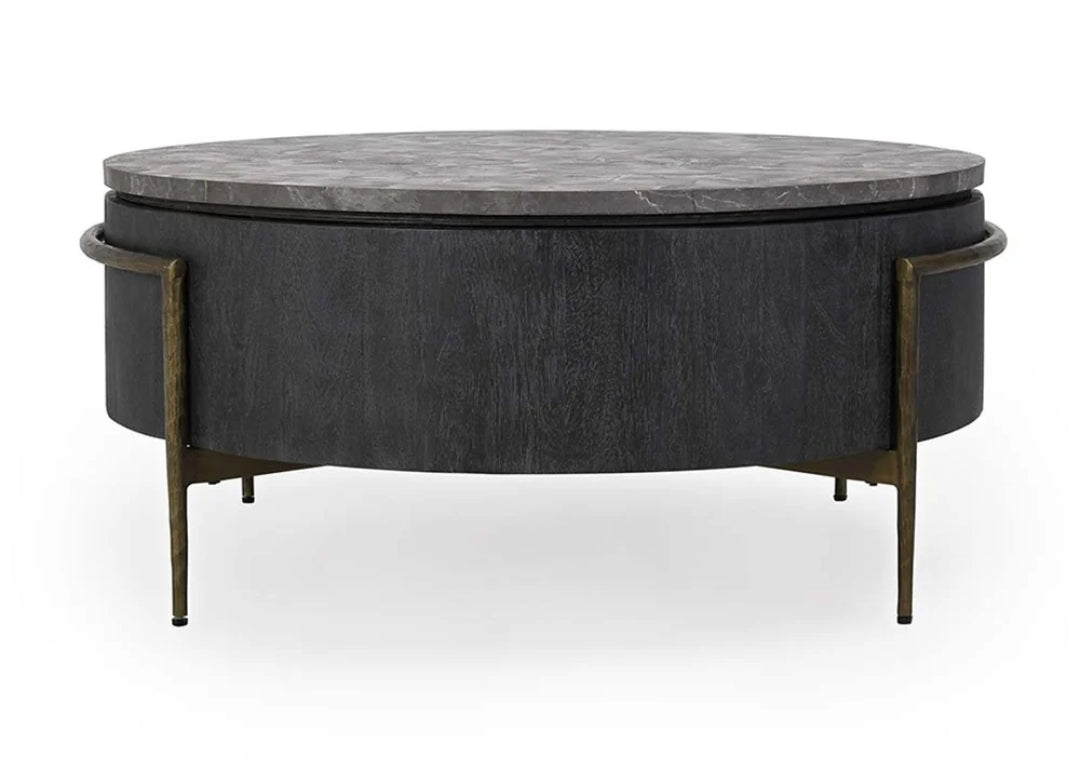 42" Round Coffee Table With Solid Mango Wood/Concrete Laminated Stone