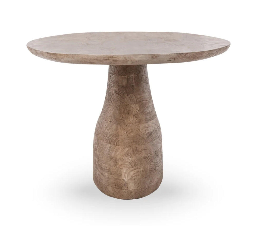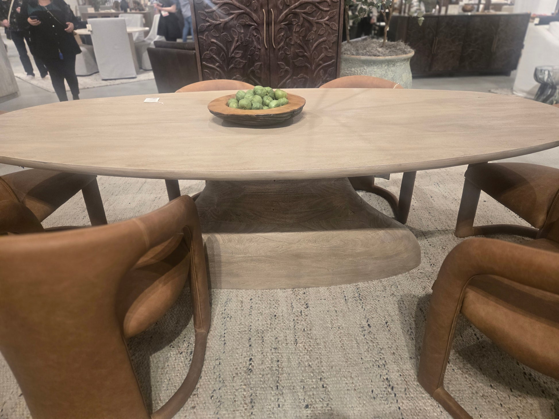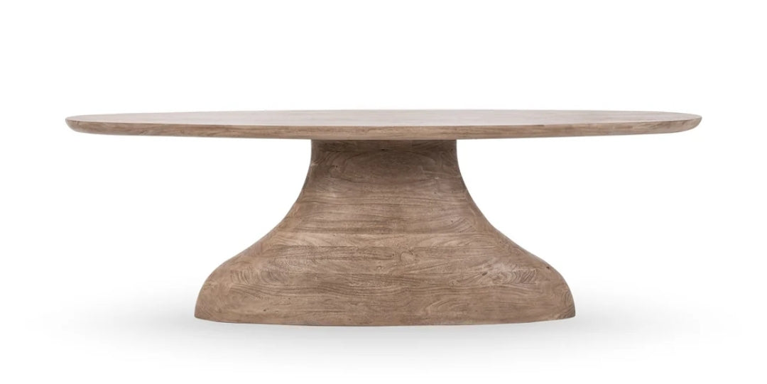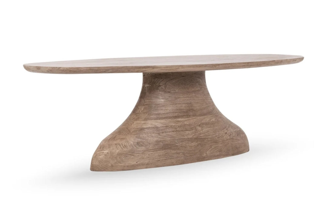 94" Solid Carved Wood Dining Table with Pedestal Base in reclaimed oak grain finish