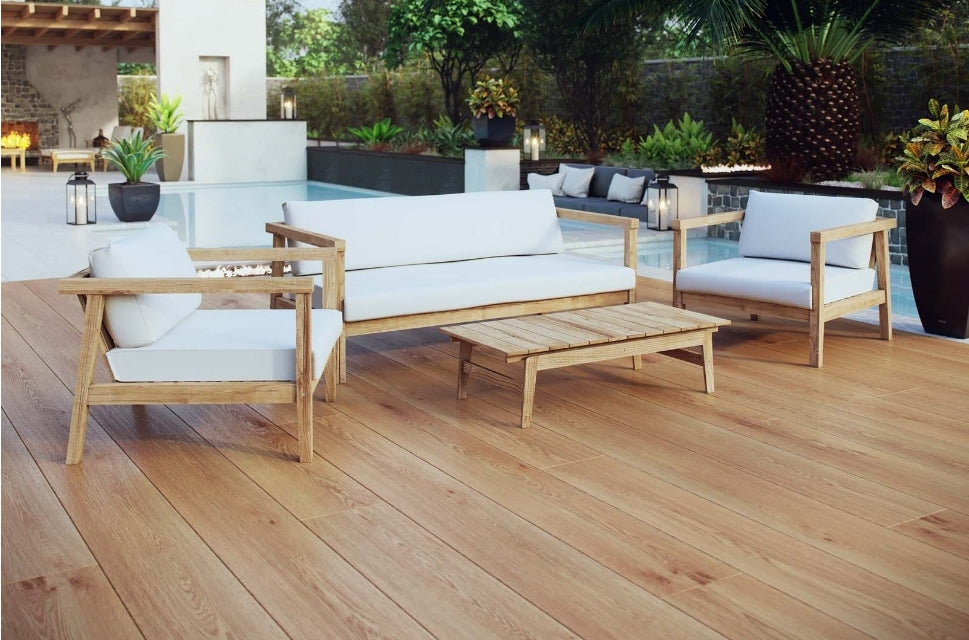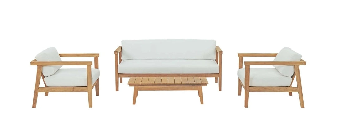 Maribella Outdoor Teak Sofa Set - White Cushions