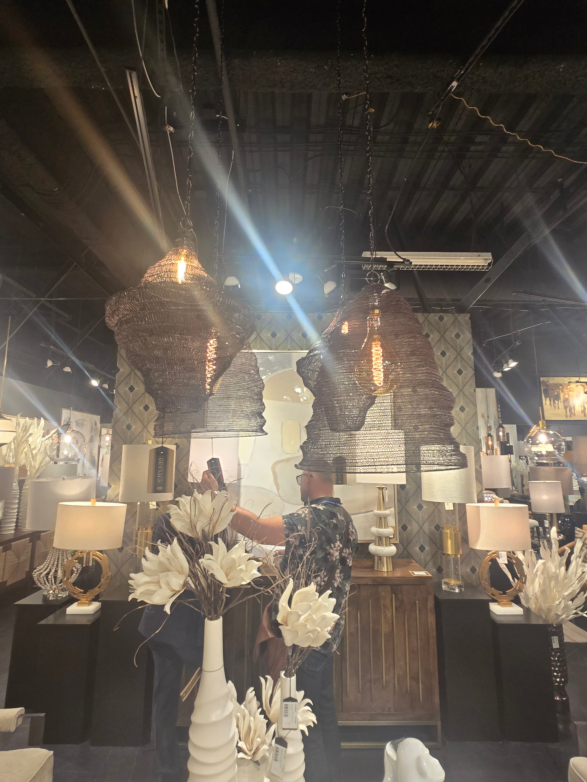 Brand New 20" Gorgeous Tulum Satin Black Chain Mail Mesh Pendant Lamp