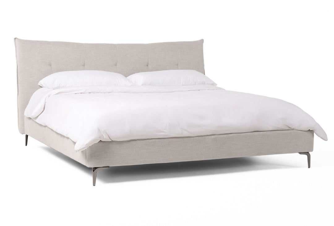 Eastern King: W87.4" X D91.33" X H45.6"Rest easy with our smooth and elegant King Bed. It is fully upholstered in a grey fabric on the side and foot rails with a tufted headboard to maximize comfort. Can support an automatic/adjustable base along with any king size mattress of your choosing.