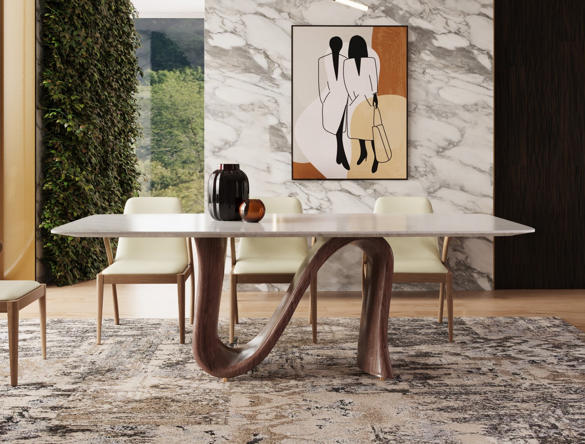 Modrest Carrizo - Contemporary Walnut + Marble Dining Table
