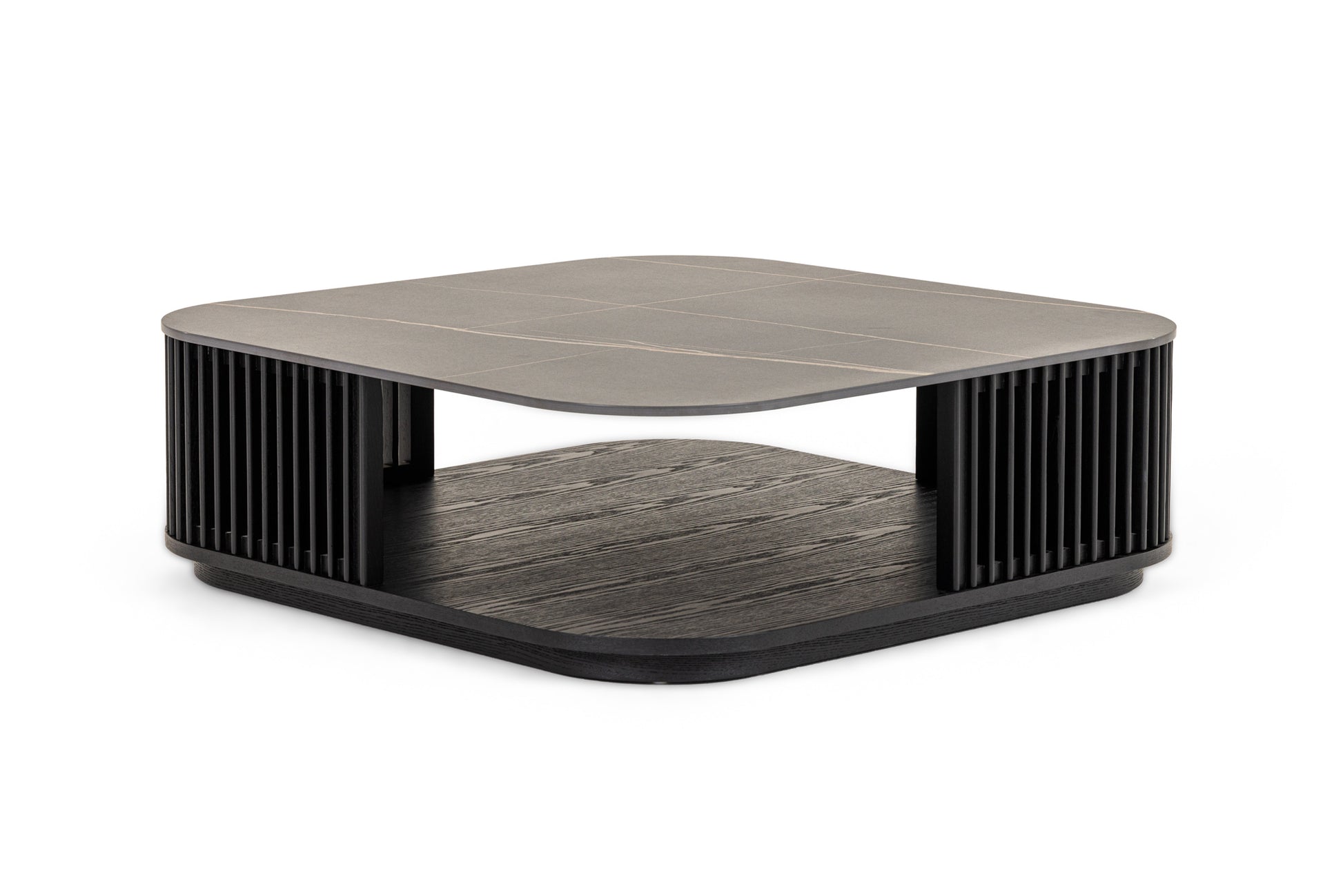 Modrest Chip - Modern Black Ceramic + Black Ash Square Coffee Table