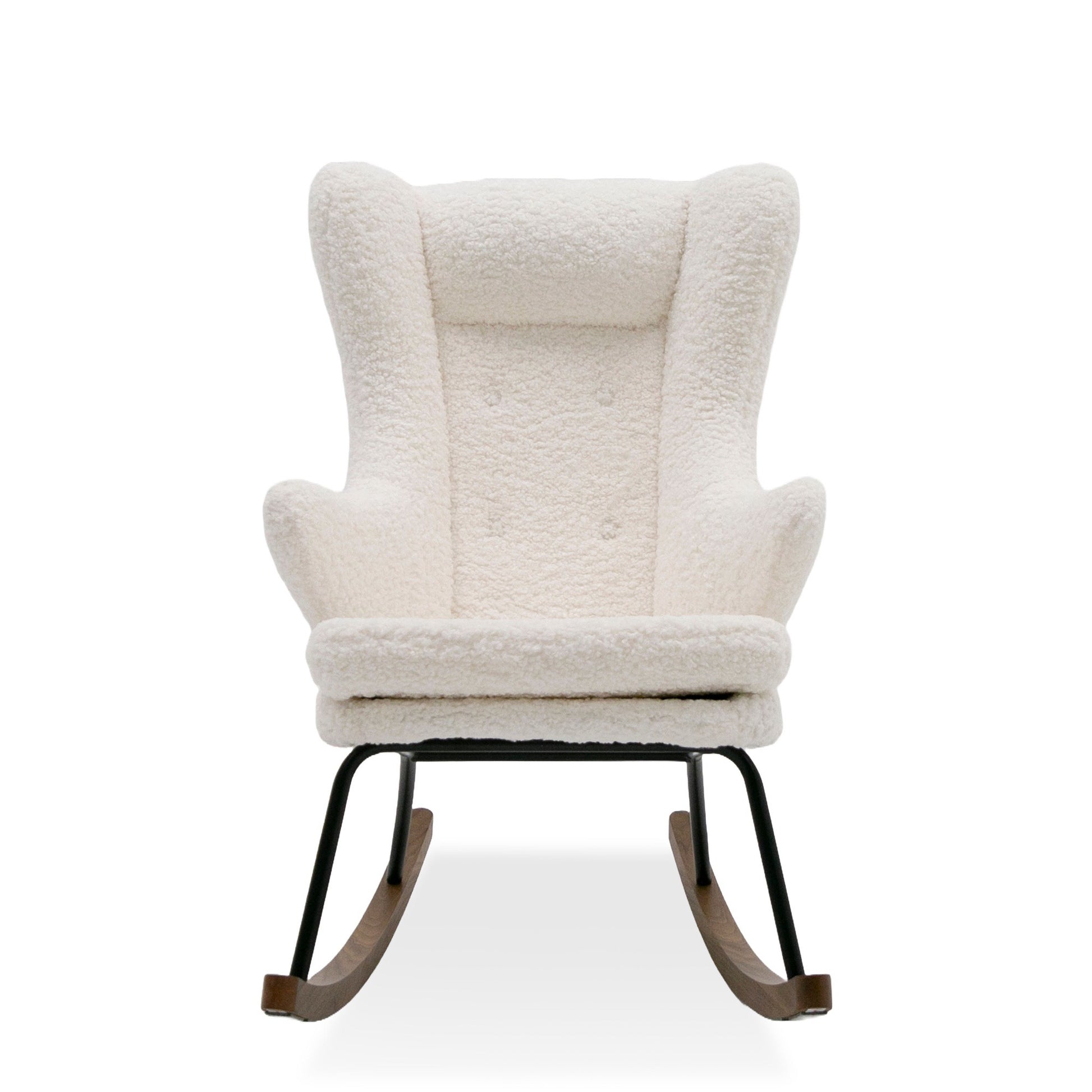 W28" x D41" x H42"The Colfax Rocking Chair is a beautiful piece for a bedroom or nursery. Upholstered in a gorgeous sherpa fabric with a metal frame and exposed wood rocking feet, this piece adds tons of texture to your space. Pair with the Hamlin Kinds Rocking Chair for a matching child size.