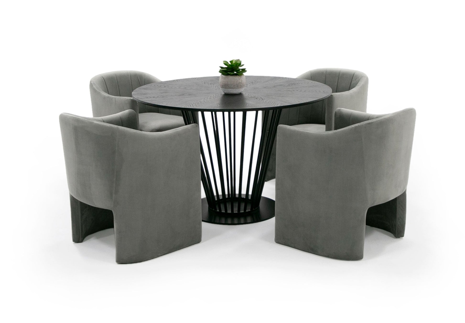 W47.2" x D47.2" x H29.5"The Modrest Conroy Modern Black Round Dining Table is a sleek and contemporary furniture piece that combines style and functionality. This table features a round shape, creating a more intimate dining experience and allowing for easy conversation among guests. The black finish adds a touch of elegance to any dining space. Crafted with high-quality materials, it ensures durability and longevity. The table's design is minimalistic and sophisticated, with a sturdy pedestal base providing stability and ample legroom. With its modern aesthetic and practicality, the Modrest Conroy dining table is a perfect addition to elevate any dining room décor.