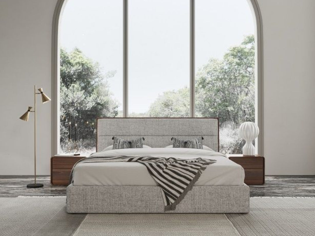 King Modern Grey Fabric & Walnut Trimmed Bed