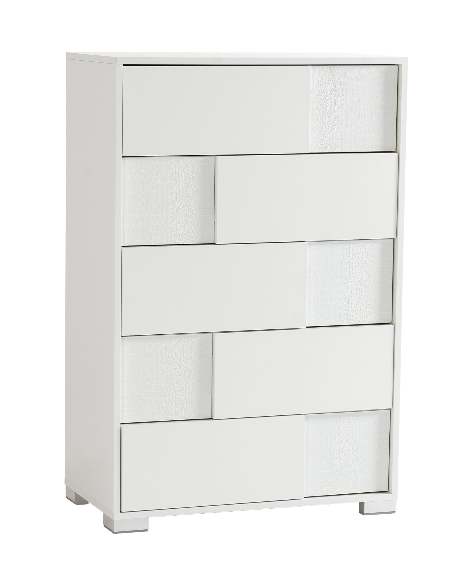 W33" x D19" x H50"The Modrest Ancona Italian modern white chest offers elegance and functionality at its best featuring a dainty white gloss and crocodile textured finish and 5 spacious drawers. Made in Italy, it stands on sturdy square metal legs and is also available in black and beige colors. This modern white chest measures W33" x D19" x H50".