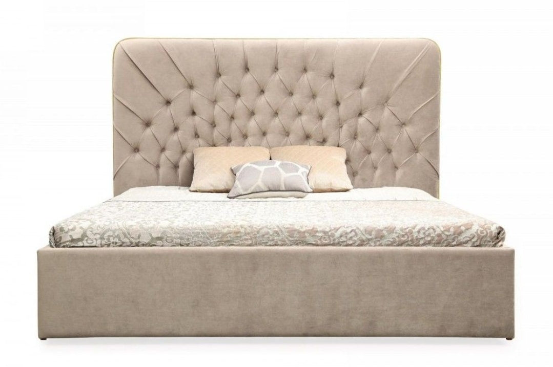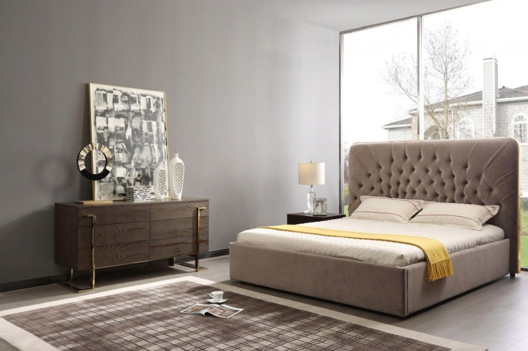Moontide Eastern King Glam Beige Velvet and Brushed Brass Bed