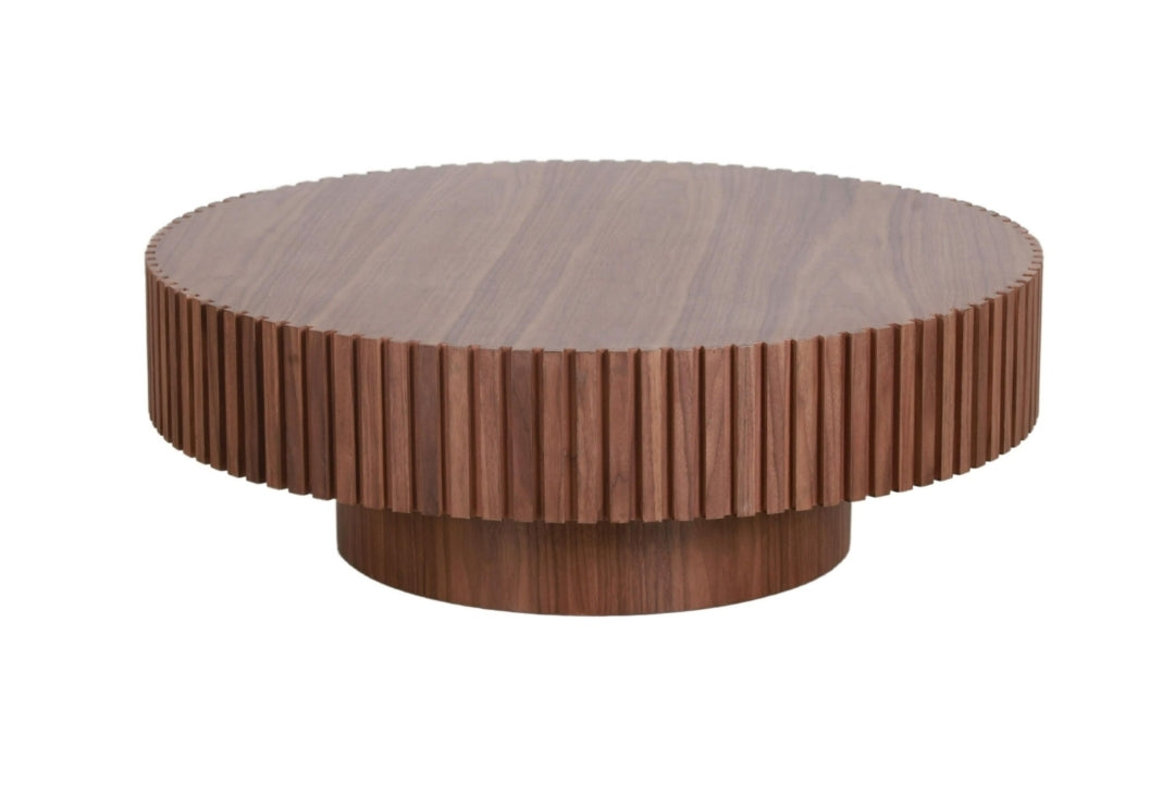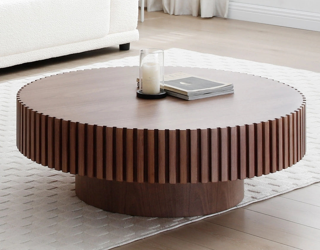 Modern Fluted 40" Walnut Large Round Coffee Table
