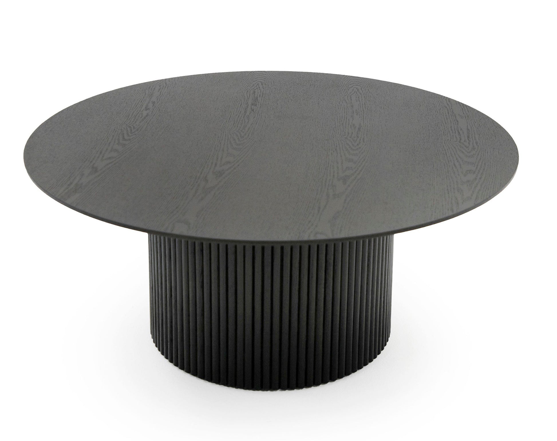W35" x D35" x H14"The Modrest Rawlins Black Ash Wood Round Coffee Table creates the perfect focal point for any living space with its black veneer top and tambour pedestal base. It pairs perfectly with the Rawlins End Table.