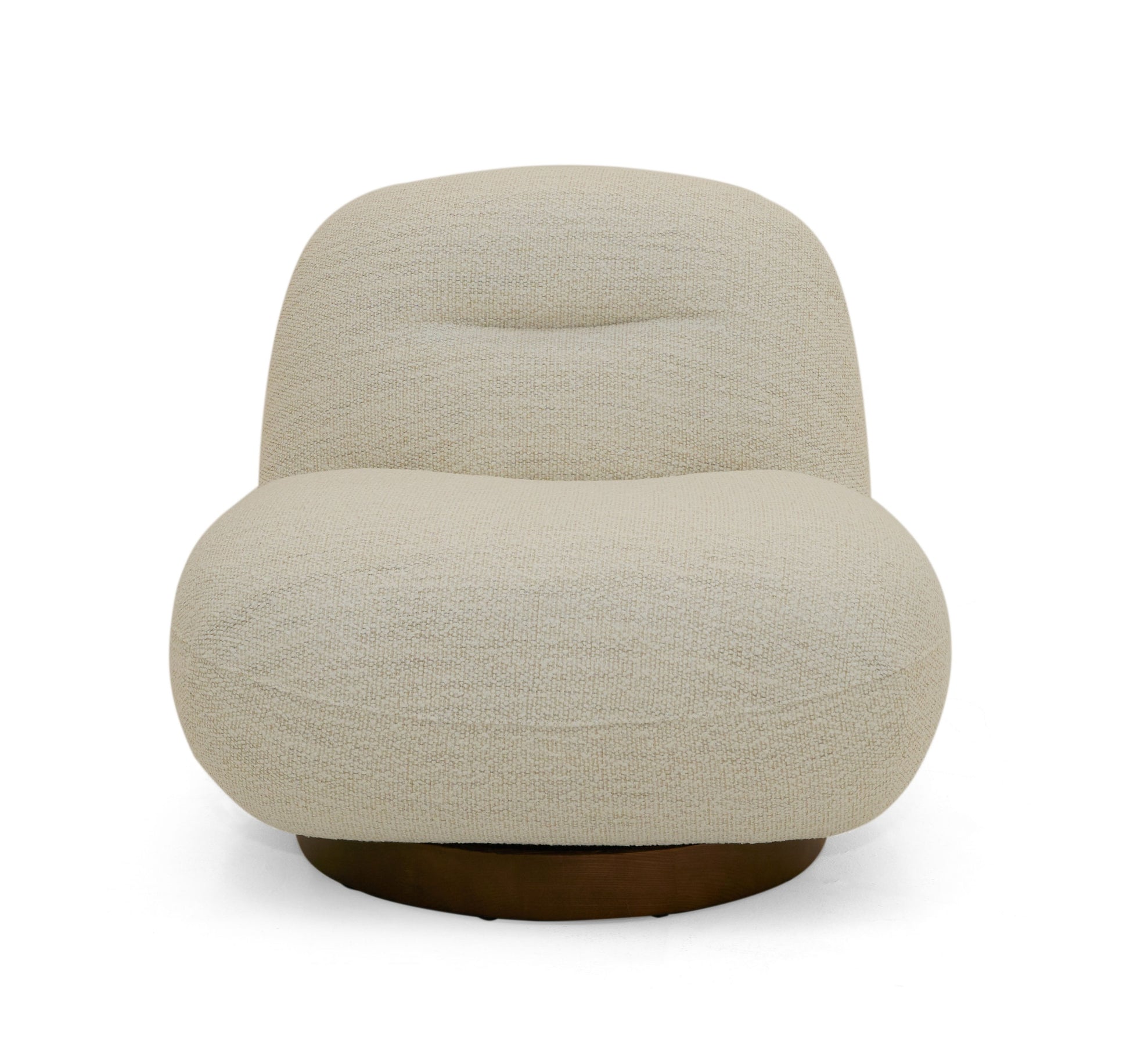 W33" x D34" x H29.5"This Renee Accent Chair was intended for the lounging lifestyle and is a comfortable and stylish take on seating. Renee's texturally appealing ivory fabric and continuous cushion are undeniably fashionable, while a low-slung back gives a casual luxury atmosphere. The swivel mechanism make for a fun and adaptable experience.
