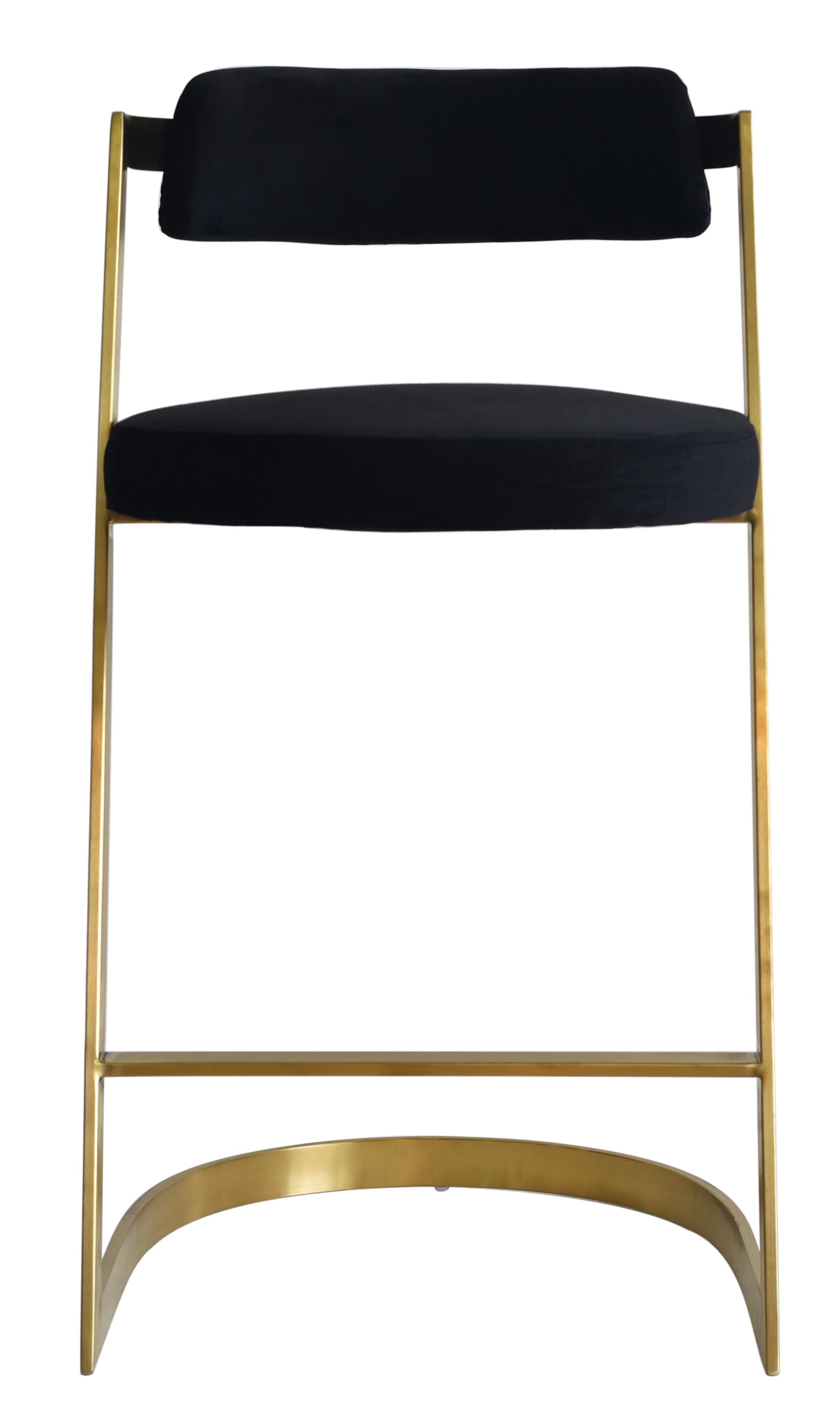 The base of the Shandra Counter Stool cantilevers creating a dramatic effect. A Gold frame that wraps around the soft velvet upholstery of the seat is sure to create a glam look. The silhouette evokes a mid-century leaning while the materials hint at a contemporary piece. The perfect accent to your home.