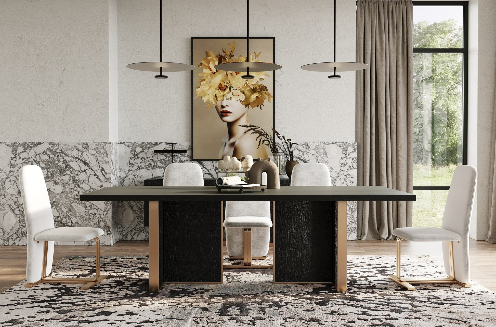 Modrest Tasha - Modern Black Ash + Brushed Gold Rectangular Dining Table