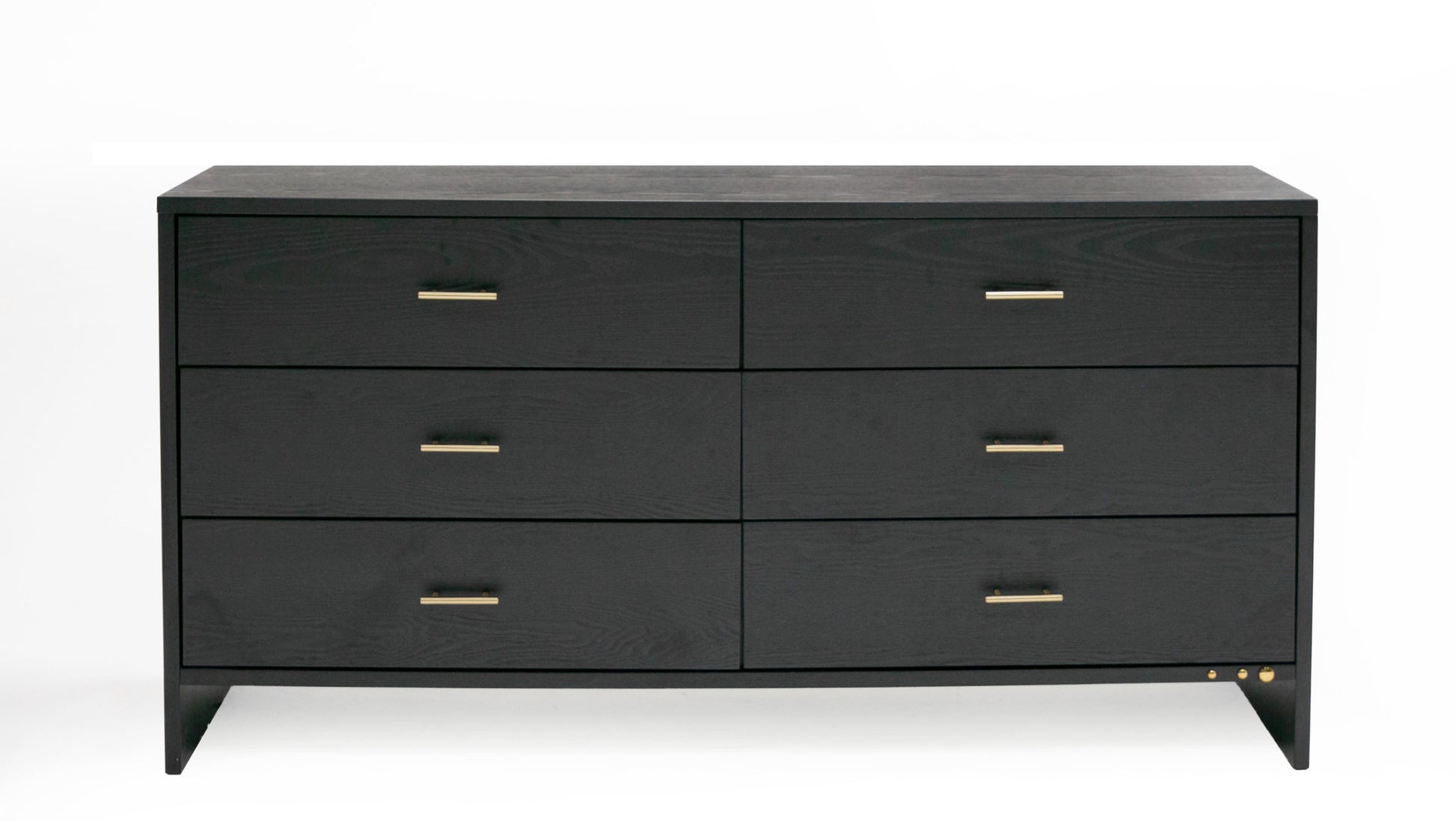 W59" x D18" x H30"The Modrest Wales Modern Grey Ash Dresser features a striking sleek dark grey ash veneer finish with wood grains. It is fitted with 6 soft-closing drawers assuring you of adequate storage and accentuated with rod-shaped brass handles. Providing a stunning contrast are the brass accents on the middle drawers. This modern dresser has a dimension of W59" x D18" x H30" and requires no assembly.