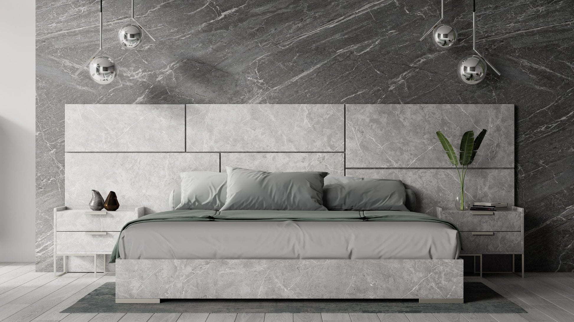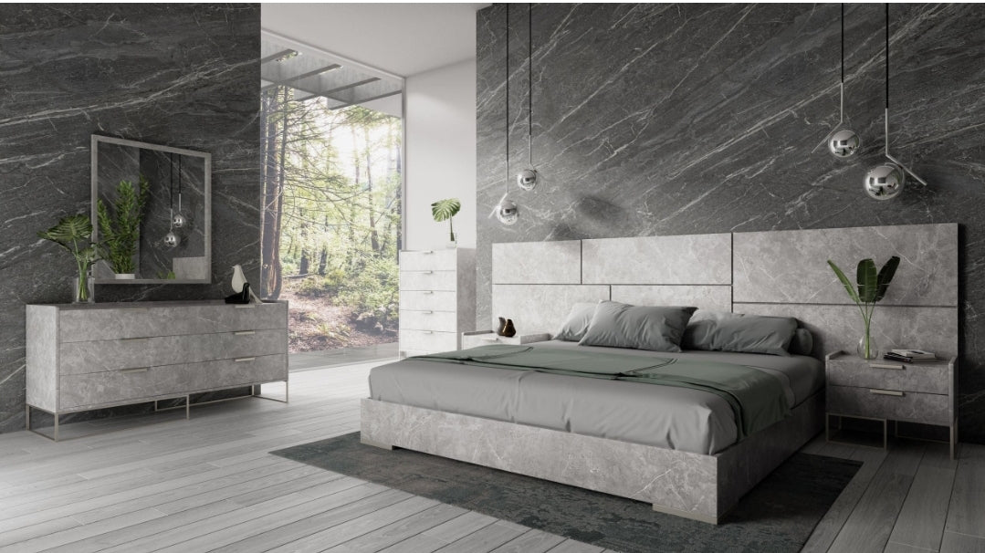 Nova Domus Eastern King Marbella - Italian Modern Grey Marble Bed w/ 2 Nightstands