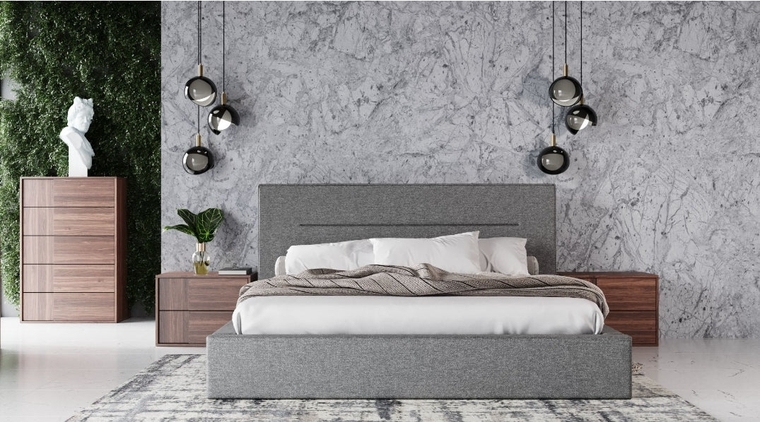 Juliana King Italian Modern Dark Grey Upholstered Bed