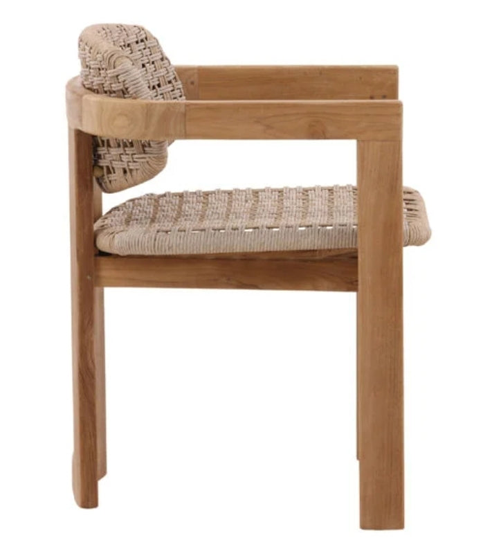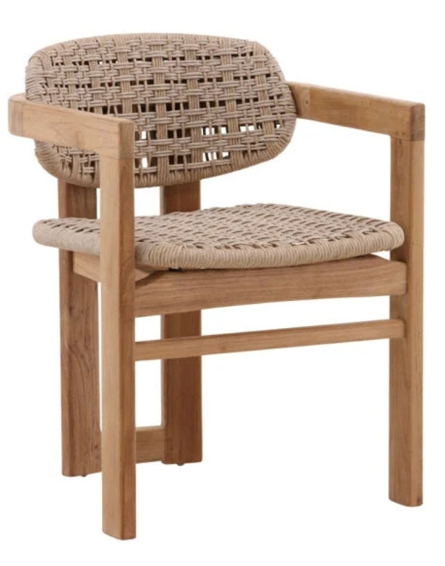 Outdoor Teak and Twisted Wicker Dining Armchair