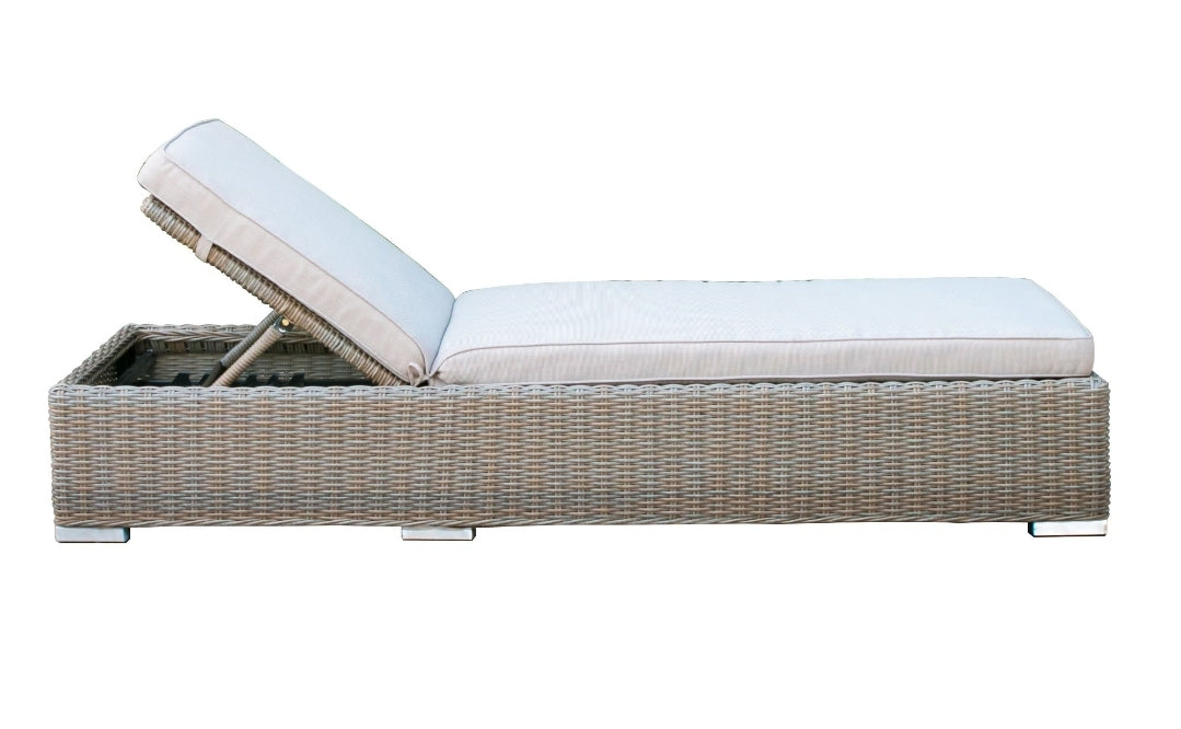 W75" x D23" x H24"The Renava Knox Outdoor Wicker Sunbed is a valuable creation featuring brown poly rattan wicker and aluminum frame. For added comfort, it features a 3-inch thick cushion wrapped in beige waterproof fabric upholstery and is designed with an adjustable backrest. Standing on sturdy wooden legs and with a dimension of W75" x D23" x H24", this outdoor wicker sunbed is a useful piece for both outdoor and indoor use.