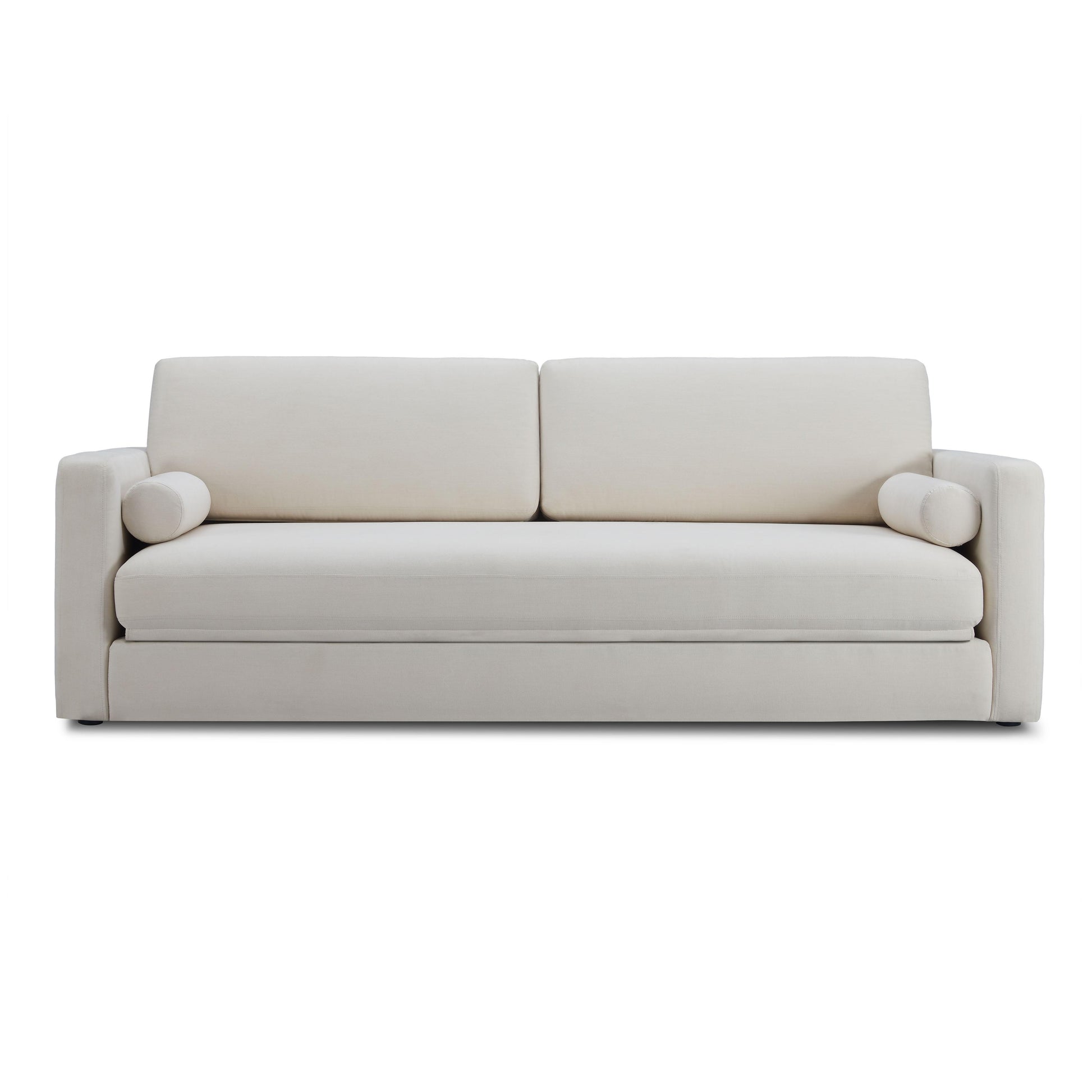 91.1"W x 39.4"D x 33.9"HIntroducing TOV's first-ever sofa bed, the Ryan Sofa Bed, available in Cream Boucle, Black Boucle, and Cream Upcycled Linen made from recycled single-use plastic bottles with a liquid-repellent coating. Unlike traditional sofa beds with complicated metal frames, Ryan features an easy fold-out system that lies directly on the floor with a thick foam mattress pad for ultimate comfort. The removable, washable cover is machine-friendly, making it super convenient to transform any room into a cozy guest retreat in no time!