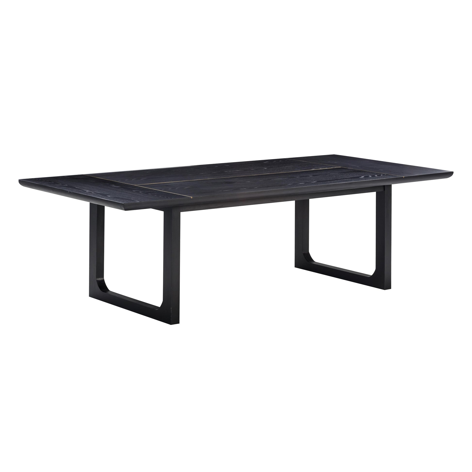 102"W x 48"D x 30.3"HThe Shiloh Black Ash Rectangular Dining Table is the perfect statement piece for any contemporary or modern dining room. This table features a sleek black ash finish with gold accents that will give your dining room an elegant and sophisticated look.The rectangular shape makes it perfect for entertaining, and cant sit 8-10 people.