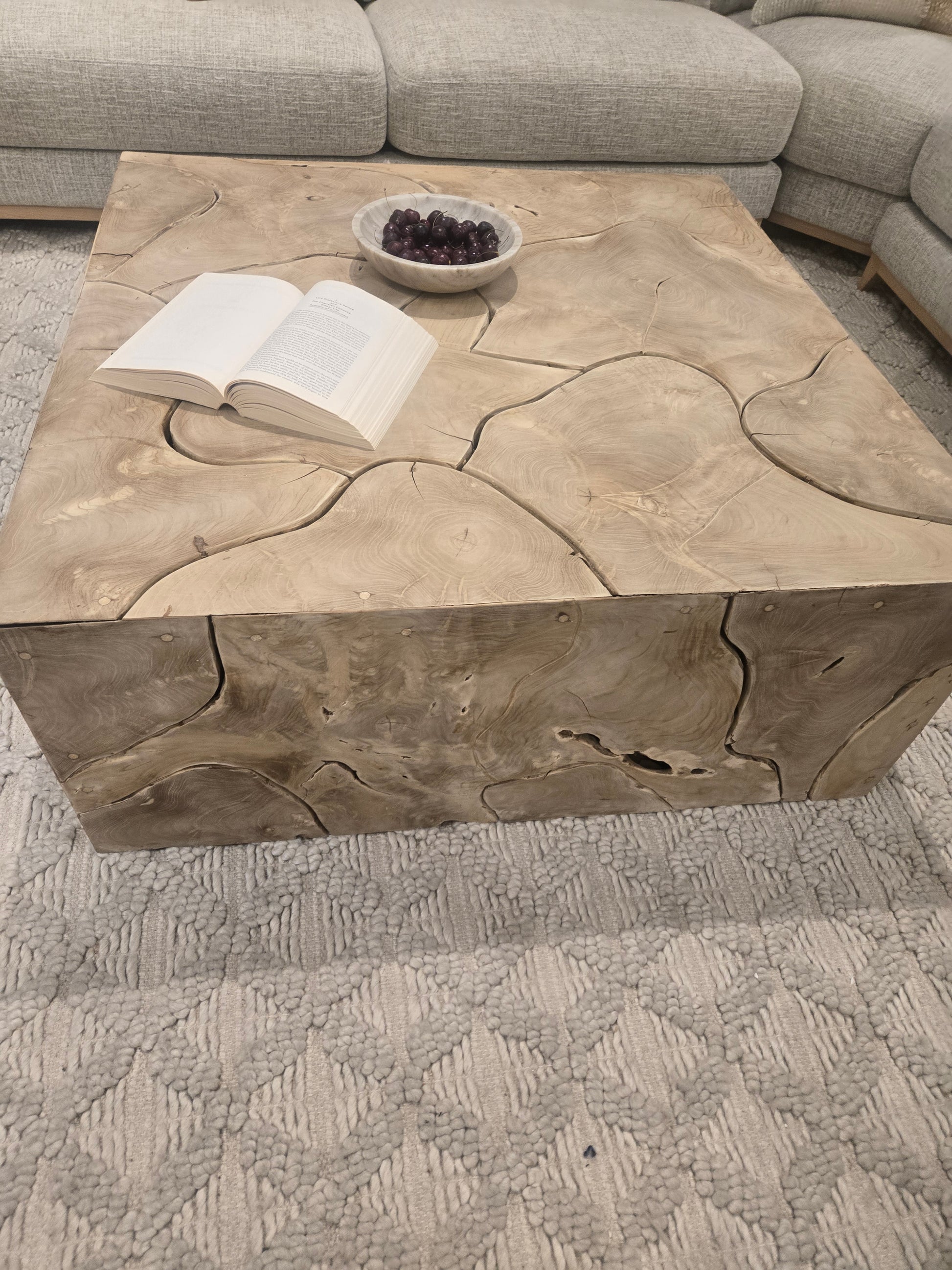 Stunning 40" Handcrafted Bleached Solid Teak Wood Square coffee table