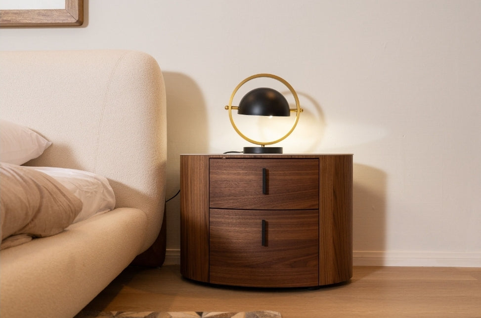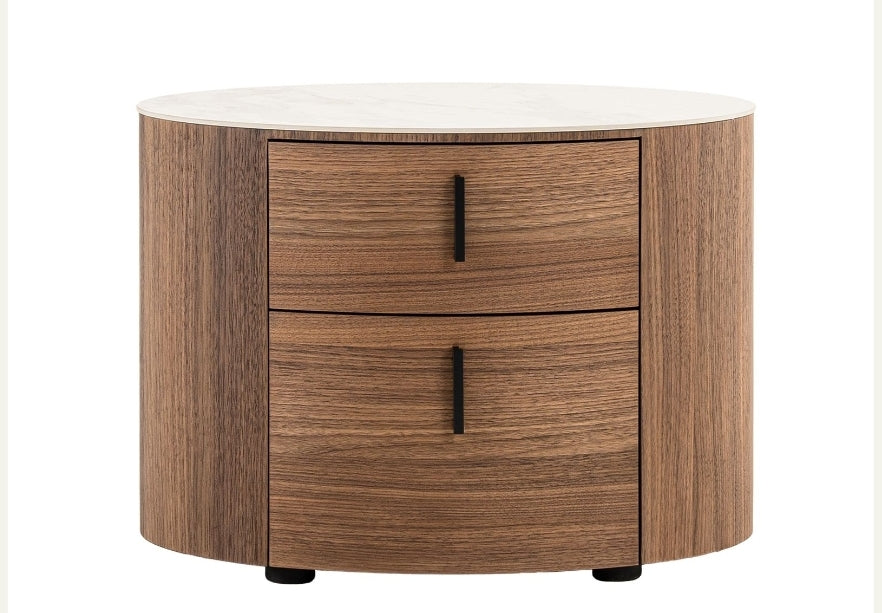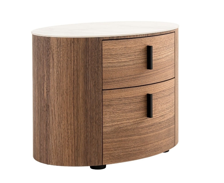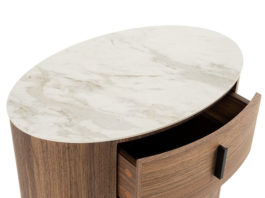 White Ceramic & Walnut Oval Nightstand Collection